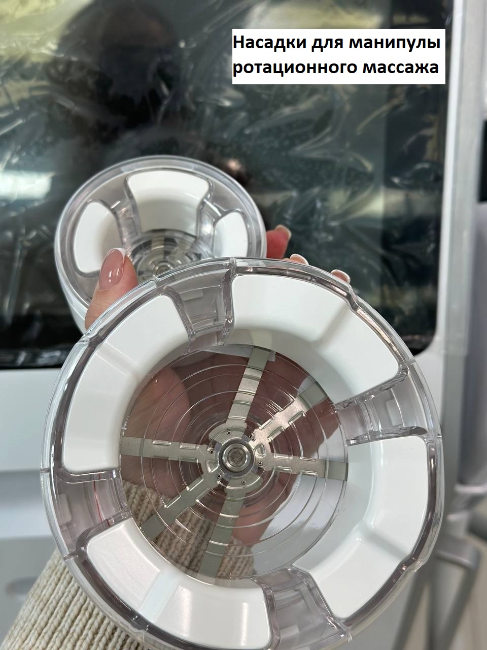 5. Манипула ротационного массажа имеет две насадки (большую и малую) для разных зон.